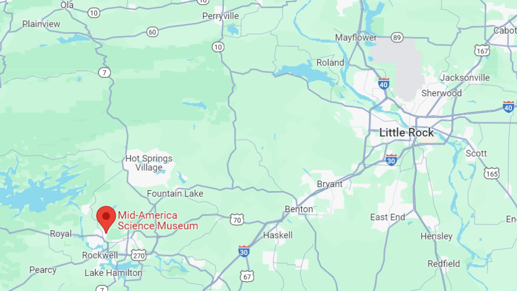 The Mid-America Science Museum is located in Hot Springs, Arkansas near the Mountain Pine Junction. See event details below: